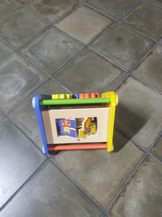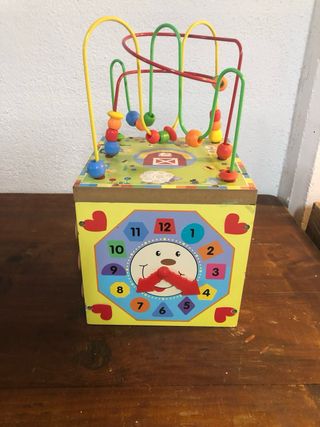 Cubo de actividades, en perfectas condiciones. Ideal para el desarrollo de habilidades motoras finas. - Incluye laberinto de cuentas y formas geométricas. - Perfecto para niños pequeños. - Hecho de madera.