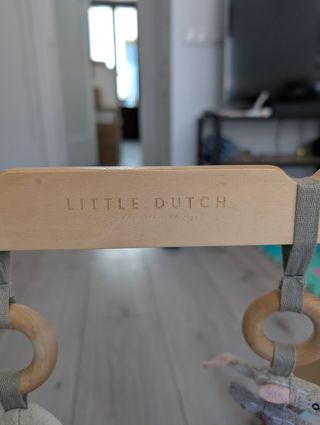 Gimnasio para bebé de madera de la marca Little Dutch, en perfecto estado. - Arco de madera de color natural con detalles en azul. - Incluye tres juguetes colgantes: ballena, pulpo y sonajero. - Juguetes de tela suave y colores neutros.