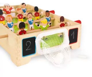 Mini futbolín de madera con 4 filas de jugadores (12 jugadores en total) y 3 balones de madera para niños a partir de 3 años. Como nuevo porque usado muy poco. Es práctico: las redes de las porterías se pueden quitar gracias al sistema de velcro para coger las bolas más fácilmente. ¡Su tamaño permite llevarlo a todas partes y jugar encima de una mesa dentro y fuera de casa! Materiales naturales. Metodologías activas: M.Montessori, E.Pickler, Waldorf