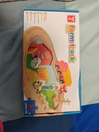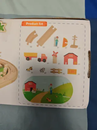 Set de tren de madera Farm Track con 25 piezas. Fomenta la imaginación y las habilidades. - Incluye granja, animales y vehículo. - Ideal para niños de 3 años en adelante. - Desarrolla la coordinación mano-ojo y el pensamiento lógico.