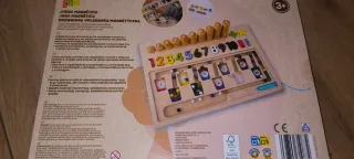 Juego de habilidad y aprendizaje matemático de madera. - Incluye números, cuentas y piezas para contar. - Fomenta la motricidad y el desarrollo sensorial. - Diseñado para niños a partir de 3 años.