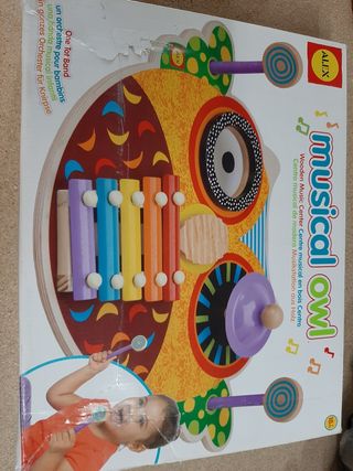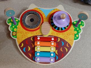 Bateria de madera para niñ@s. Perfecta para empezar con la música de manera segura para nuestros peques. Está bien conservada aunque se nota su uso teniendo algún desgaste en la madera y el cabezal de una de las baquetas tuvo que ser pegada.