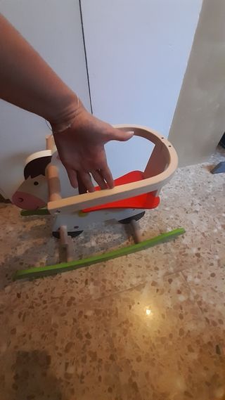 mecedora para bebé en forma de caballito. todo de madera. ideal para niñ@s pequeños