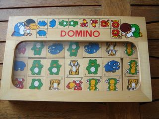 Vendo domino infantil de animales, de madera, con caja también de madera y tapa con cristal. En perfecto estado, tanto la caja con cristal como las fichas. Son 28 fichas. Cada ficha mide 9x5x1 cm y la caja 33x20x5 cm. Ideal para niños a partir de 2 años, piezas grandes y manejables. Gastos de envío no incluidos.