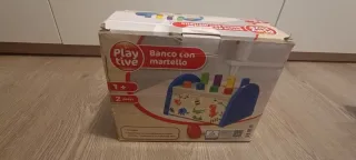 Se vende un lote de 4 juguetes de madera para niños pequeños, valorados en 80 €, Son ideales para desarrollar la motricidad fina y la coordinación ojo-mano. - Incluye un martillo de madera y un juego de clavijas. - Un juguete de formas geométricas para encajar. - Un xilófono de colores. - Un juguete de caracol con formas para encajar. - Un rodillo que suena cuando es empujado Los juguetes están en buen estado, con algunas señales normales de uso.