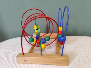 Laberinto de madera para niños. - Estructura de madera resistente. - Cuentas de colores brillantes. - Alambre de metal flexible.