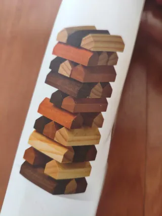 Juego de habilidad y equilibrio hecho de piezas de madera maciza de diferentes colores. Consiste en apilar las piezas intentando mantener la torre estable, creando estructuras como las que aparecen en la caja. Ideal para niños o para jugar en familia. Desarrolla coordinación, paciencia y motricidad fina. Estado: usado, pero en buen estado y completamente funcional. Incluye caja y todas las piezas.