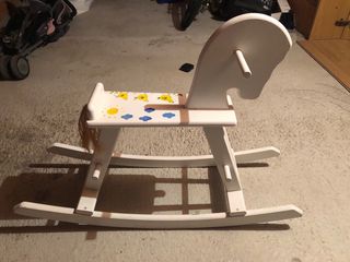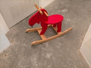 Caballito balnancin de madera pintado a mano Lleva nombre propio a un lado Jorge