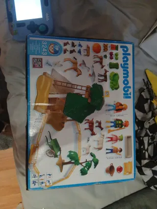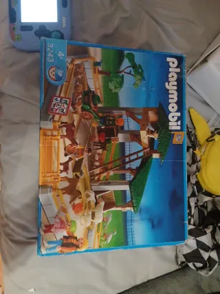 Set de juego de la granja de Playmobil, modelo 3243. - Incluye figuras y animales de granja. - Estructura de madera y vallas.