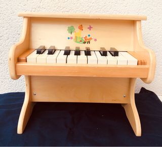 Música solo a través de toques ligeros, sin botones Juguete de madera clásico con tecnología Magic Touch. Reproduce música y tiene actividades. Habla inglés, francés y español. 3 modos: instrumento, color / animal y estilo libre