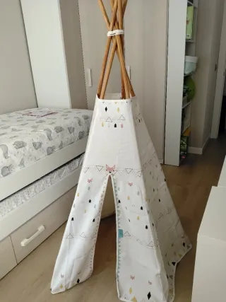 Bonito tipi infantil de color rosa con un divertido estampado de estrellas. Perfecto para crear un espacio de juego. - Tela suave y ligera. - Diseño de estrellas. - Estructura de madera.
