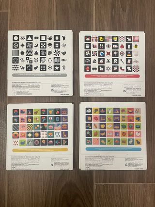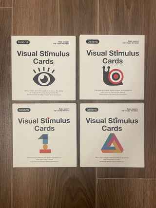 Conjunto de tarjetas de estimulación visual para bebés, diseñadas para el desarrollo temprano. - Incluye tarjetas en blanco y negro con toques de color básico (rojo, amarillo, verde, azul). - Diseñadas para bebés de 0 a 3 meses y de 3 a 6 meses. - Fomenta el desarrollo visual y la discriminación. - Impresas en papel ecológico con tinta segura.