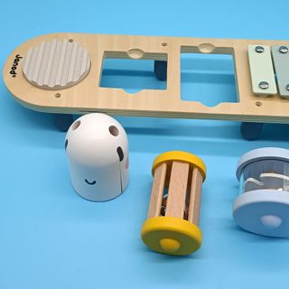 Juguete musical Rolimate, ideal para combinar juego y actividad musical. Pensado para niños entre 1 y 6 años, es especialmente atractivo para los menores de 3 años. - Combina bloques de distintas formas y colores. - Incluye instrumentos musicales. - Contribuye al desarrollo y estimulación infantil. - Fabricado en madera de caucho con acabado seguro.