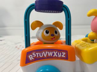 Juguete de aprendizaje electrónico 2 en 1 que se transforma de libro de cuentos para jugar sentado a centro de actividades sólido y vertical con 360 grados de juego. 3 niveles de dificultad que enseñan el alfabeto, los números, a contar, las formas y los colores. 3 páginas de cuento y 8 actividades divertidas, incluyendo 3 formas para clasificar, juguete giratorio, juguete deslizante, puerta de escondite y mucho más. 3 botones luminosos activan más de 120 canciones, sonidos, melodías y frases. Está prácticamente nuevo, con su caja. Es un juguete precioso. Nuevo cuesta 43€.