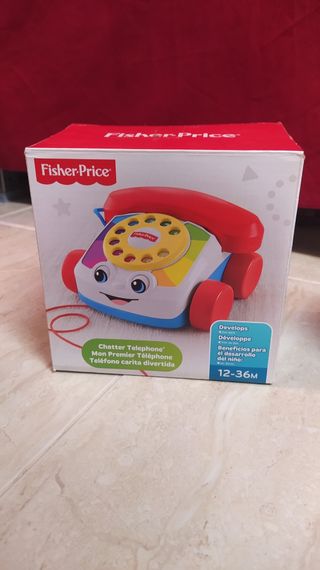 Teléfono de juguete Fisher Price antiguo (años 60), en buen estado. Base de madera y mecanismo metálico Colores desgastados pero el mecanismo funciona perfectamente.