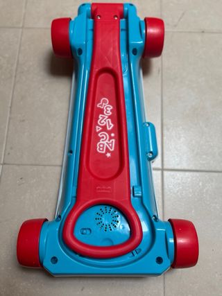 Xilófono musical de Fisher-Price con un diseño colorido y divertido. - Mango rojo para empujar. - Teclas de colores con números y formas. - Ruedas rojas en los laterales.