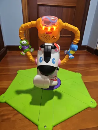 Divertida cebra saltarina de Fisher-Price. Gira 360 grados y hace muelle el asiento, con musica. A partir de 1-2 años. Poco usada y en buen estado. Si se compra en mano la puedo entregar montada o desmontada.