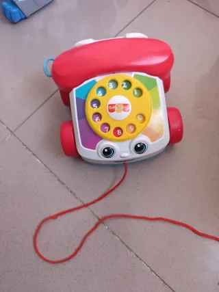 Divertido teléfono de arrastre con ruedas y cordón para que los más pequeños jueguen. - Diseño colorido con dial giratorio. - Cara sonriente con ojos. - Asa para colgar.