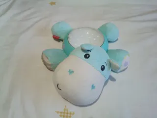 Hipopótamo de peluche de la marca Fisher-Price, ideal para la hora de dormir. - Proyecta estrellas en el techo. - Incluye botones de colores para diferentes funciones: luces, sonido, música.