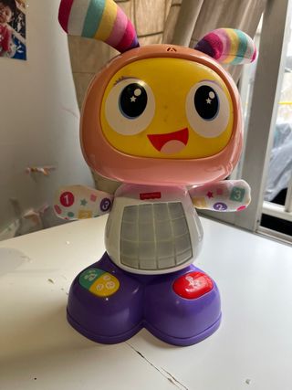 Divertido robot interactivo de Fisher Price. - Diseño colorido y atractivo. - Ruedas para movimiento. - Detalles de engranajes visibles. - Botones y elementos interactivos en la parte frontal.
