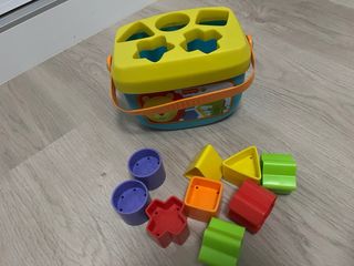 Juguete de encajables de la marca Fisher-Price con asa para transportar. - Tapa con formas geométricas. - Colores vivos y alegres.