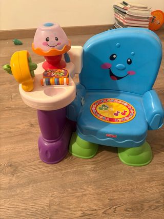 Silla de aprendizaje interactiva para bebés y niños pequeños. - Diseño colorido con personajes amigables. - Incluye actividades musicales y de aprendizaje. - Asiento cómodo y seguro.