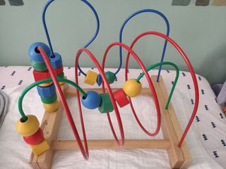Laberinto de cuentas de madera de Ikea. Ideal para el desarrollo de la motricidad fina. - Base de madera. - Alambre con cuentas de colores. - Diseño colorido y atractivo.