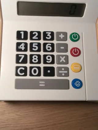 Caja registradora de juguete de IKEA, ideal para que los más pequeños jueguen a las tiendas. Tiene un diseño divertido y colorido. Sin pilas, funciona con panel solar pero basta con la luz de casa para que vaya bien, no necesitas ponerla al sol - Pantalla LCD. - Teclado numérico. - Botones de función.