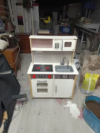 Divertida cocina de juguete para niños, ideal para horas de juego creativo. - Incluye accesorios como platos, cubiertos y ollas. - Diseño colorido y atractivo. - Fabricada en madera resistente.
