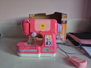 Máquina de coser de juguete en color rosa, ideal para iniciarse en el mundo de la costura de forma divertida. - Diseño infantil y atractivo. - Incluye pedal. - Funciona con pilas (no incluidas).