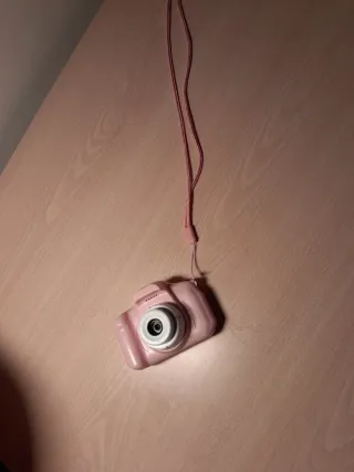 Cámara digital diseñada para niños, con un divertido color verde. - Diseño compacto y fácil de usar. - Pantalla frontal para selfies. - Certificación FC, CE y RoHS.