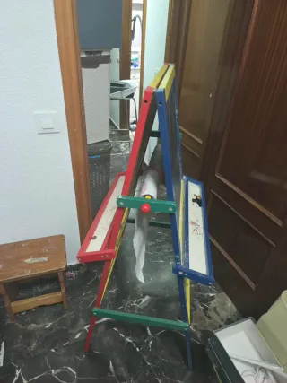 Pizarra infantil con caballete para que los más pequeños aprendan el abecedario. Ideal para dibujar y escribir. - Pizarra negra. - Caballete de 3 patas con soporte rojo. - Incluye letras del abecedario. Para un niño o niña lo negociamos a 20 céntimos , es barato, por favor