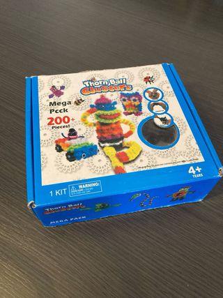 Set de juego educativo para niños con piezas de colores. - Bandeja roja con compartimentos. - Piezas de encaje y construcción. - Tableros con diseños. - Fomenta la creatividad y la motricidad fina.