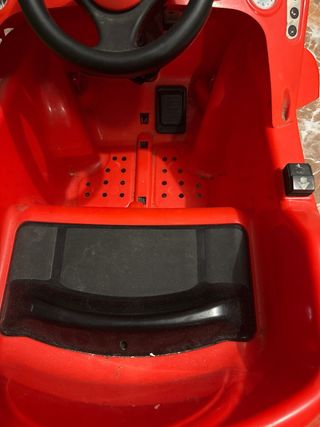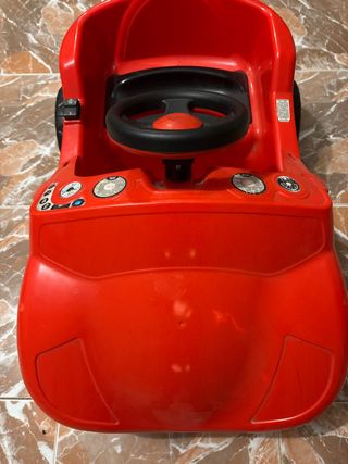 Coche de juguete para niños, ideal para paseos divertidos. - Diseño deportivo en color rojo. - Volante y panel de control. On pegatina pero tiene mas defecto - Ruedas resistentes. Lleva mando a distancia y cargador El precio es bajo porque tiene uso