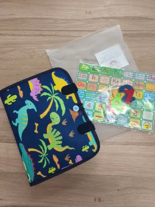 Maletín con diseño de animales marinos y dinosaurios, ideal para la estimulación sensorial. - Estampado de tiburón, ballena, medusa, tortuga, caballito de mar y peces y dinosaurios. - Colores vivos y alegres. - Asas para facilitar su transporte. - Libro con 4 capas de actividades. - Ideal para aprender uso del reloj, figuras geométricas y números. - Con múltiples actividades para atar y desatar, perfecto para aprender a vestirse de forma divertida.