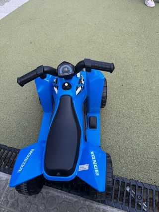 Quad eléctrico infantil con licencia oficial Honda TRX 250X. Un vehículo divertido y seguro para los más pequeños. - Diseño inspirado en el modelo TRX 250X. - Color azul vibrante. - Ruedas todoterreno para mayor agarre.
