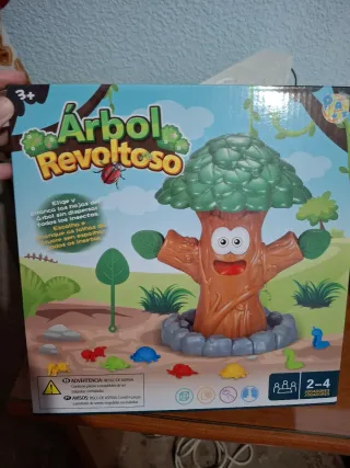 Juego de mesa Árbol Revoltoso para niños a partir de 3 años. El objetivo es quitar las hojas del árbol sin que caigan los insectos. Está en perfecto estado y en su caja original.