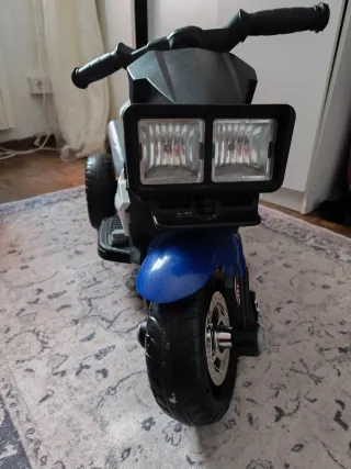 Moto eléctrica infantil de color azul. - Diseño deportivo. - Ruedas resistentes. - Manillar ergonómico.