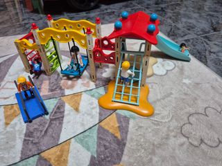Preciosa área de juegos Playmobil, ideal para niños. Incluye varios elementos para divertirse. - Parque infantil con columpios, tobogán y zona de escalada. - Incluye varias figuras Playmobil. - En muy buen estado, listo para jugar.