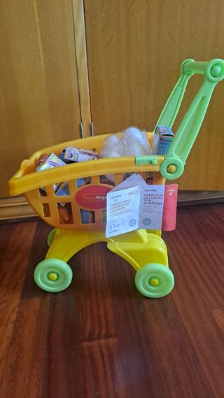 Carrito de la compra de juguete nuevo para jugar, con etiqueta, valorado en 30 euros, de la marca juguetos - Incluye accesorios de alimentos para jugar.
