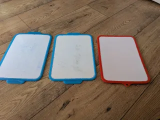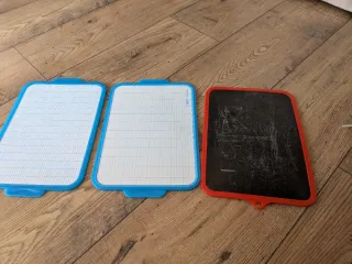 Dispongo de 3 pizarras infantiles, ideales para que los más pequeños dibujen y aprendan. Están usadas, algún signo de desgaste. Marca bic . Delante blanca y detrás con cuadros o pizarra negra. Cada una 2€. Las 3 son 5.€ - Dos pizarras con marco azul. - Una pizarra con marco rojo. - Superficie blanca para escribir o dibujar.