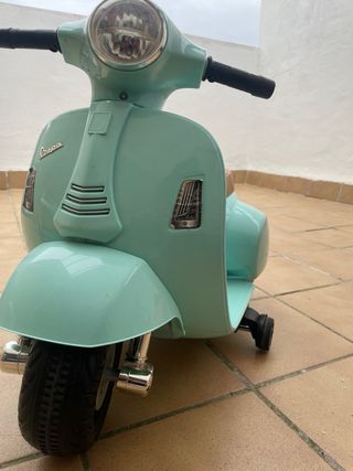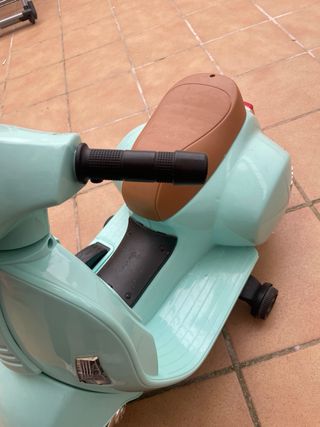 Moto eléctrica estilo Vespa para niños, en un bonito color menta. - Diseño inspirado en la icónica Vespa. - Ruedas de goma para un mejor agarre. - Asiento cómodo.