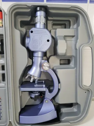 Microscopio educativo para niños con varios niveles de aumento. - Incluye aumentos de 100x, 400x y 1200x. - Diseñado para el aprendizaje y la exploración. - Incluye accesorios para experimentos.