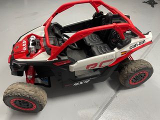 Coche eléctrico infantil a batería, modelo Can-Am Maverick 24v Cambio por movil iphone - Diseño deportivo en blanco y rojo. - Asientos negros de piel - Ruedas todoterreno y de goma eva Amortiguadores traseros Pantalla con musica y usb Luces delanteras y traseras Mando a distancia Funciona todo perfectamente Esta nuevo se a usado 4 veces, mas info preguntar. Cambio por movil iphone #COCHEELECTRICONIÑO #CANAMNIÑO24v #BUGYNIÑO