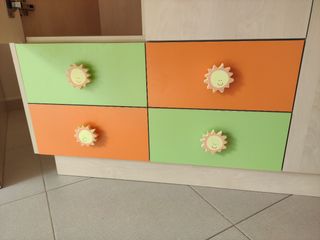 Precioso armario para habitación infantil, con cajones de colores alegres y tiradores con forma de sol. Está en muy buen estado. - Perfecto para organizar la ropa y juguetes de los más pequeños. - Diseño colorido y alegre, ideal para una habitación infantil. - Cuatro cajones espaciosos con tiradores de sol. Tengo otros módulos a juego. Está desmontado y listo para enviar.