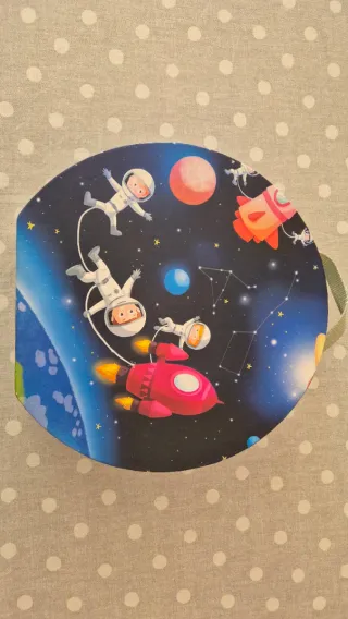 Casita dulv3s suelos Para cama de 90 - Diseño de tela azul con estrellas y planetas. - Incluye dibujos de astronautas, cohetes y naves espaciales. - Estructura ligera y fácil de montar.