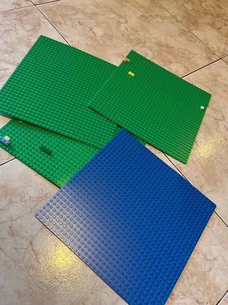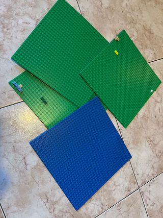 Conjunto de bases Lego para construir tus creaciones. - Dos bases de color verde. - Una base de color azul.