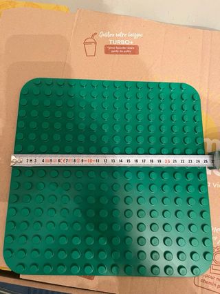 Placas base verdes para construcciones con piezas Lego Duplo de 25,5x25,5cm - Color: verde. - Material: plástico. Estan abiertas pero totalmente nuevas las compramos y luego no las quiso porque no le valian para lo que el niño queria.