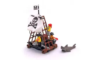 Set de construcción Lego 6261 Raft Raiders completo. - Balsa con vela en buen estado. - Tres minifiguras de piratas y toburón en buen estado. - Instrucciones en buen estado. Falta la caja.