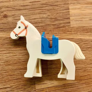 Caballo blanco de Lego y una silla azul. En buen estado. Algo amarilleado